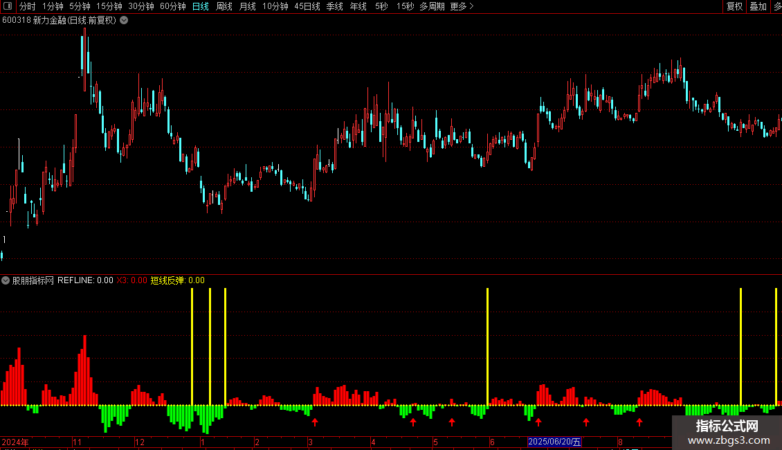 短线反弹:IF(CROSS(个股,9),10,0),STICK,LINETHICK3,COLORYELLOW;