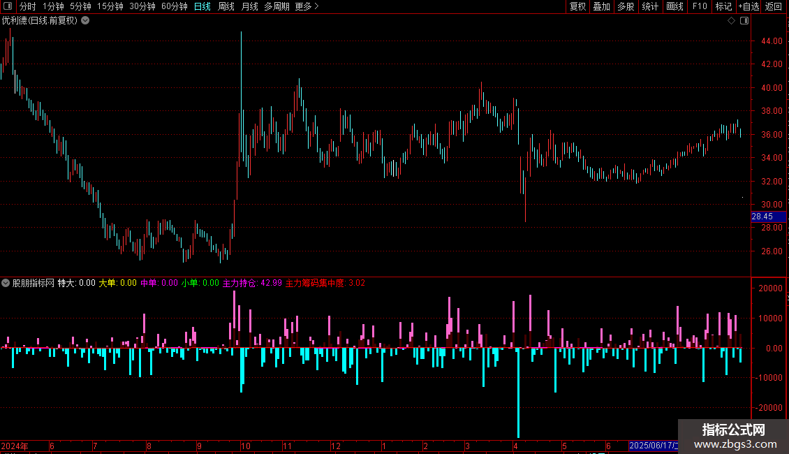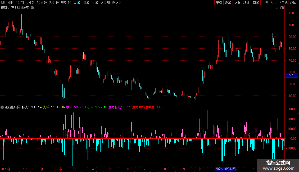 STICKLINE(进出量>0,0,进出量,0.5,0),COLORCC66FF;N:=1;QJ0:=(HIGH+LOW+CLOSE)/3;