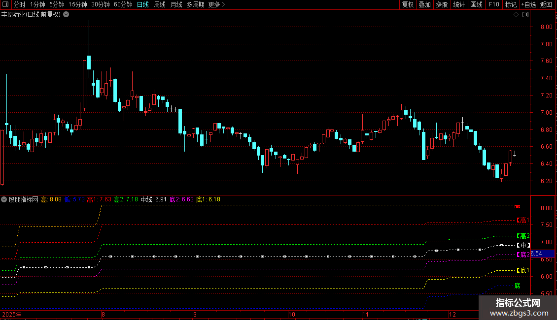 底1:高-(高-低)*0.809,DOTLINE,COLORYELLOW;