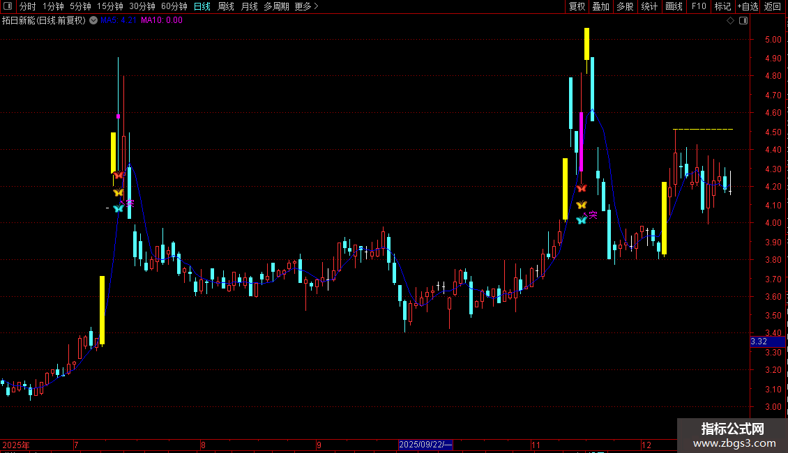 操作线:MA(CLOSE,5),COLORBLUE,LINETHICK1;