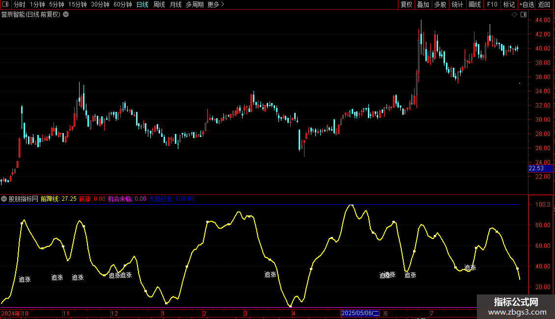 DRAWTEXT(CROSS(黑马线,A5)AND 前蹄线<80,黑马线,'追涨');