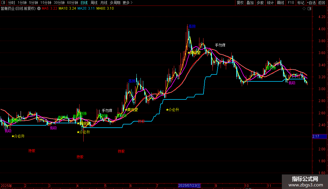 DRAWTEXT(FILTER((A2AA>-0.5),84),(HIGH)*(1.05),'手勿痒'),COLORFFFFFF;