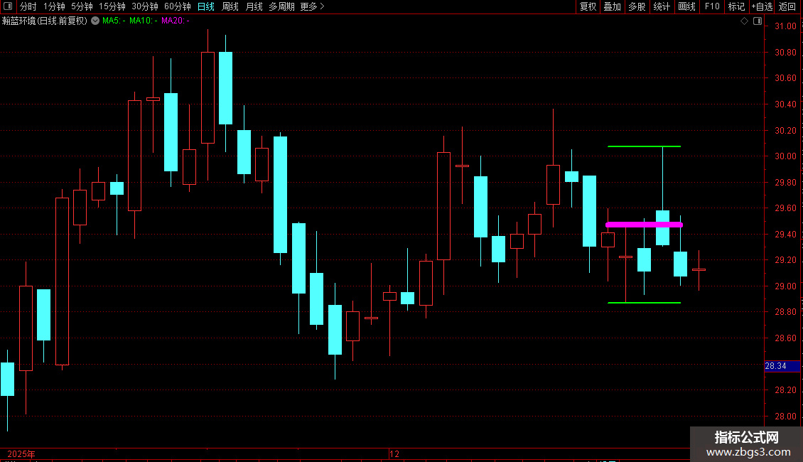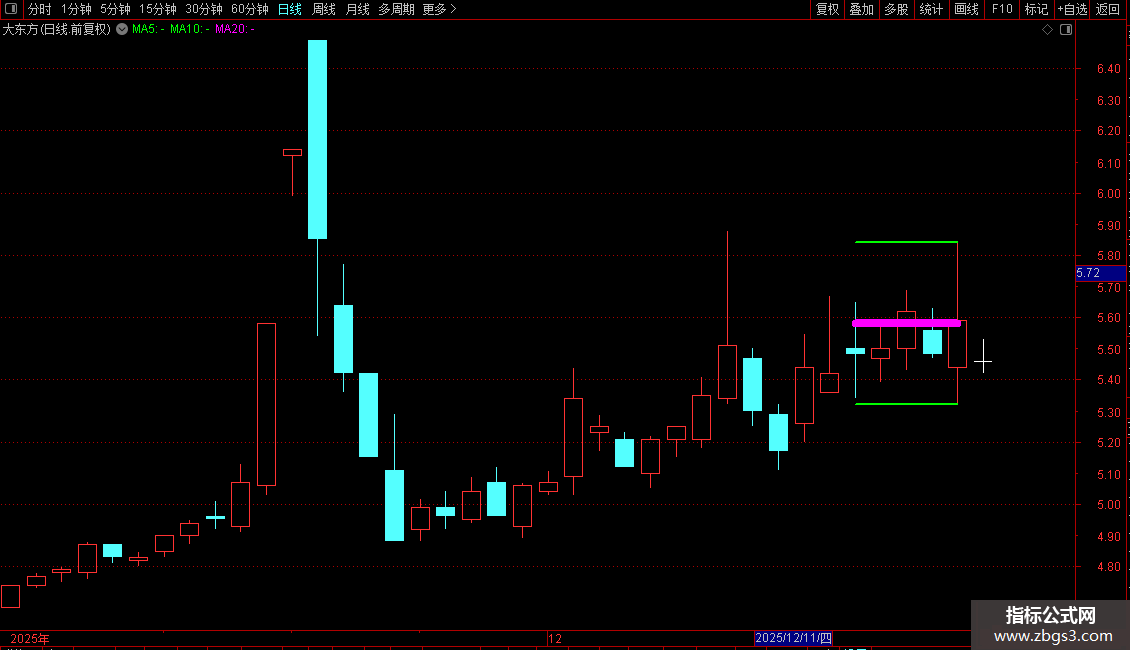 中:IF(CONST(SUM(1,0)>5)*(CURRBARSCOUNT>1)*(CURRBARSCOUNT<5+2),(CONST(REF(LLV(L,5),1))+CONST(REF(HHV(H,5),1)))/2,DRAWNULL),DOTLINE,COLORMAGENTA,LINETHICK8;