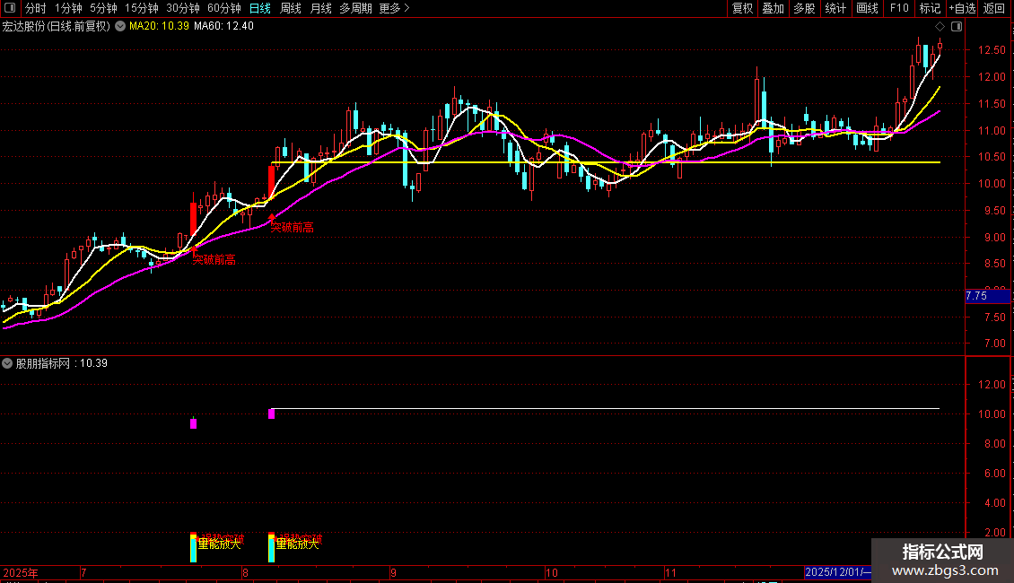 DRAWTEXT(BUY_SIGNAL,L*0.95,'突破前高'),COLORRED;
