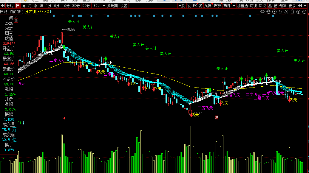 DRAWTEXT(强势天=1,LOW,'飞天'),coloryellow;