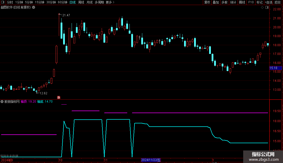 箱底:LLV(MIN(L,REF(L,AA)),AA),COLORCYAN,LINETHICK2;