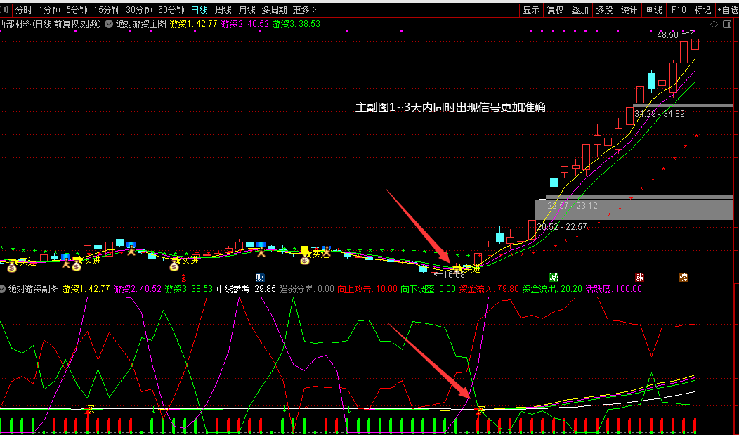 通达信【绝对游资】主副/选通过游资线捕捉价格短期波动状态源码