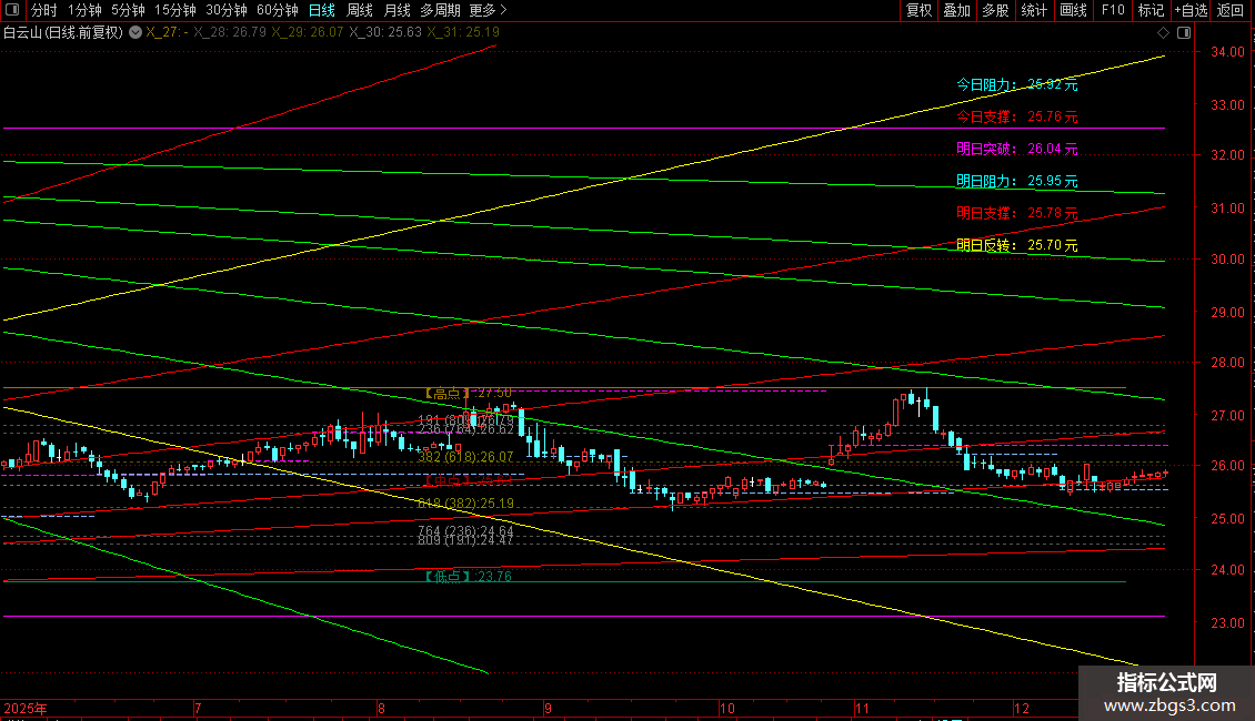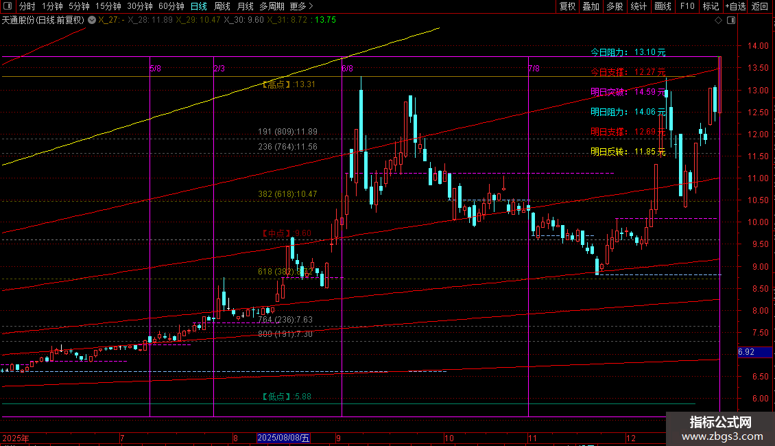 通达信威廉江恩〖角度线组合〗支撑压力划线主图源码
