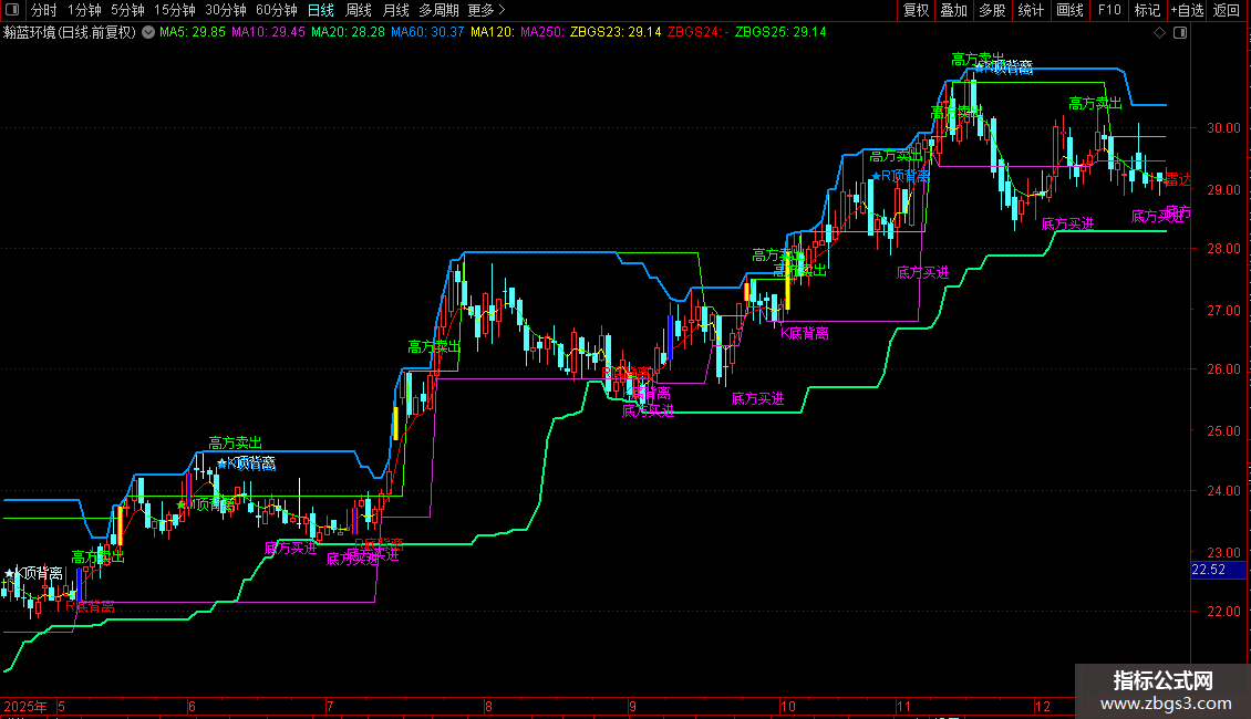 3. 多重背离预警:集成MACD、KDJ、RSI三大指标的顶底背离提示
