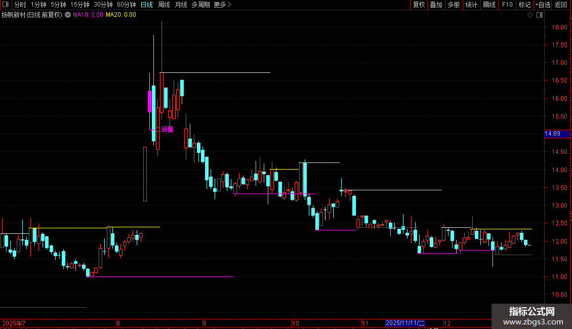 输出二倍量:1日前的ZBGS319=1 AND ZBGS319=1,画洋红色,NODRAW