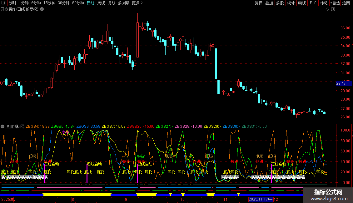 3. 信号过滤:运用27周期与5周期双维度摆动指标交叉(ZBGS55-ZBGS58),确保启动信号的可靠性