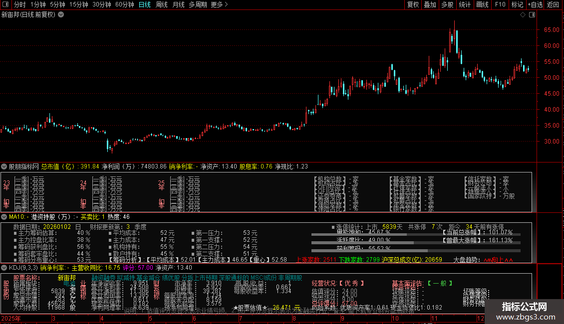 指标主要用于盘面综合分析,整合了港资持仓、市场热度、筹码结构、多空压力支撑位及大盘趋势等关键信息。通过可视化方式展示主力与散户的筹码分布、成本区间、获利比例,并结合量能饱和度和活跃度判断当前交易情绪。操作上,帮助投资者快速识别市场强弱状态、个股所处位置(高位或低位)、资金动向以及短期支撑压力区域,辅助判断入场或观望时机。