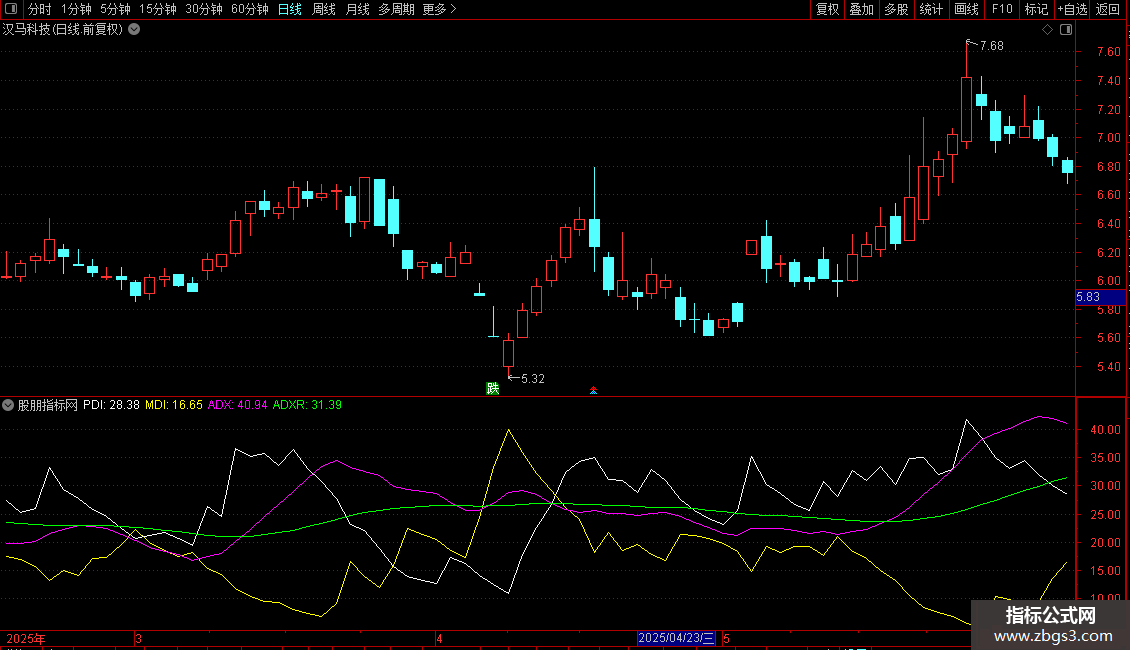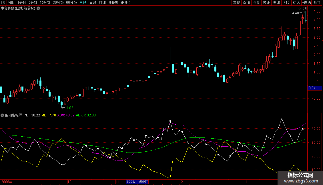 ADX: EXPMEMA(ABS(MDI-PDI)/(MDI+PDI)*100,MM);