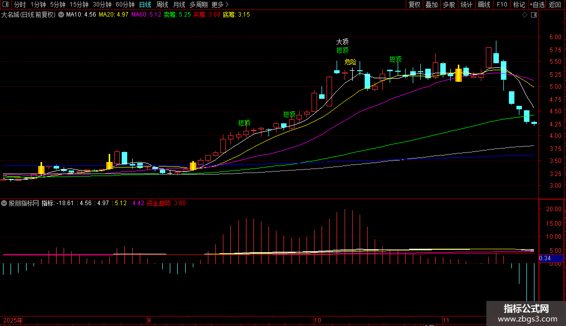 主图指标是一款功能全面、信号精准、无未来函数的优质通达信主图指标,既适合中线波段投资者用「擒底 + 均线趋势」布局底部个股,也适合短线投资者用「强势拉升 K 线 + 妖股判定线」追涨龙头股,同时通过「大顶 / 危险 / 短顶」信号有效规避高位风险,做到「买在低点、卖在高点、持股在强势区间」。