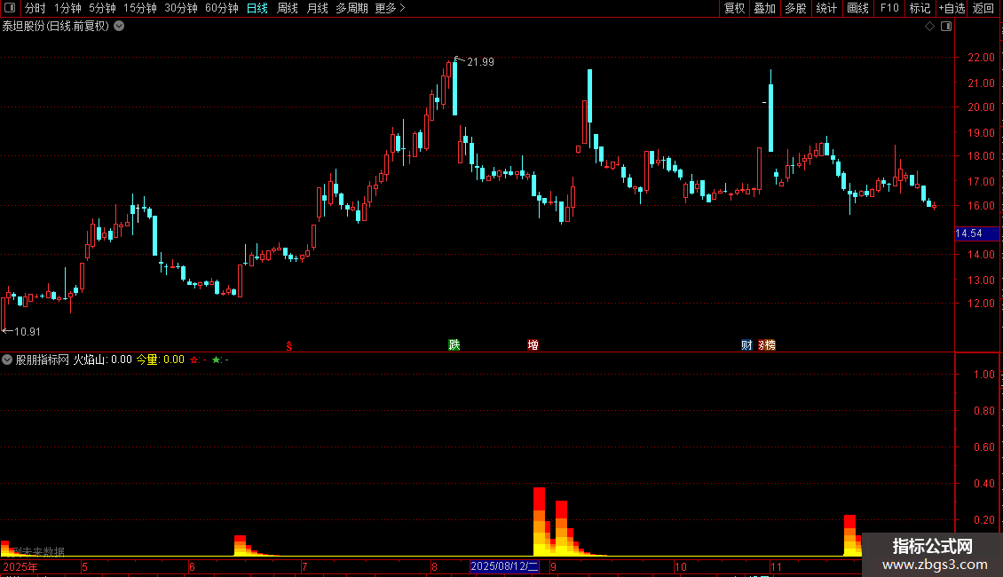 STICKLINE(火焰山>0,0,今量*0.2,8,0) COLOR00FFFF;