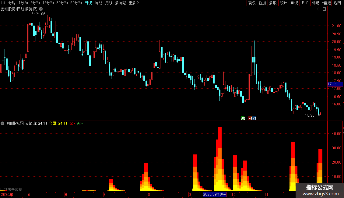 STICKLINE(火焰山>0,0,今量*0.6,8,0) COLOR0099FF;