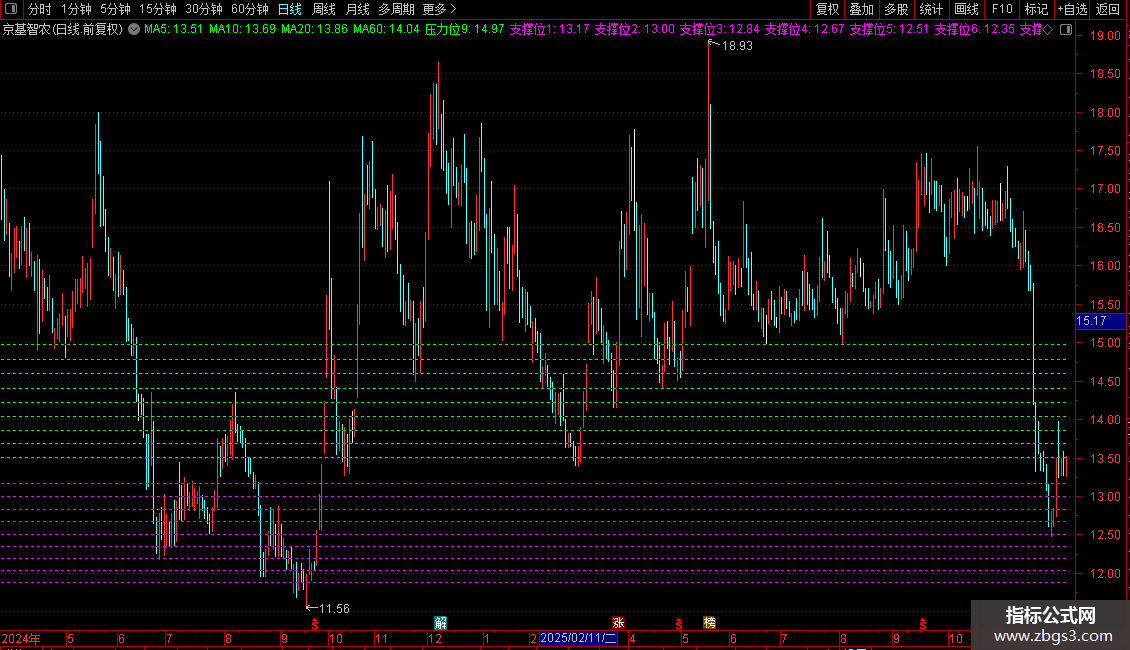 支撑位5:(DYNAINFO(3)/POW(X,15)),COLORMAGENTA,DOTLINE;