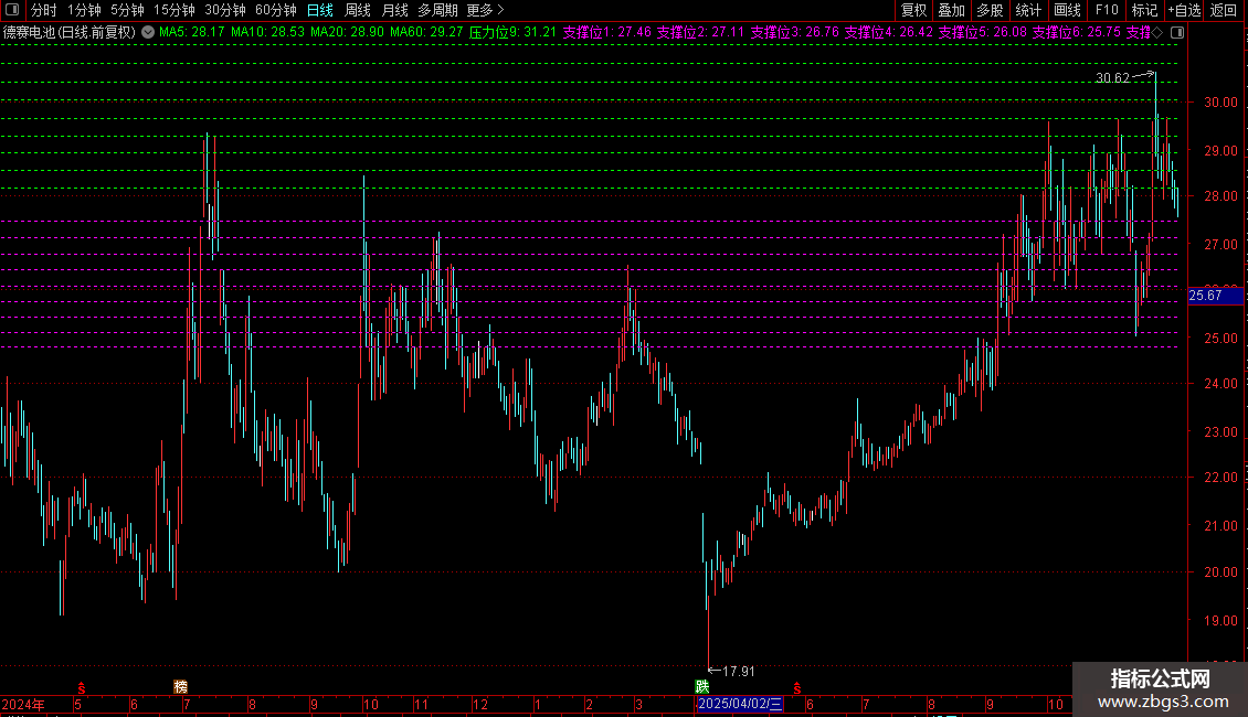 支撑位9:(DYNAINFO(3)/POW(X,27)),COLORMAGENTA,DOTLINE;