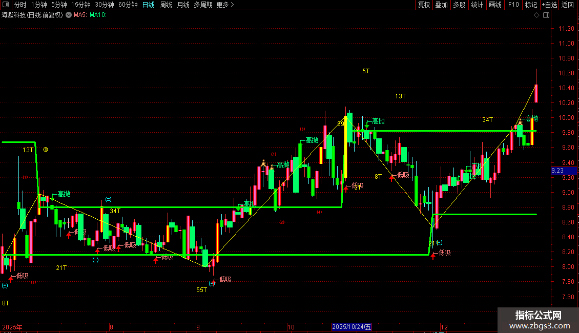 DRAWTEXT(VARZT=4,H*1.06,'5T'),COLORYELLOW;