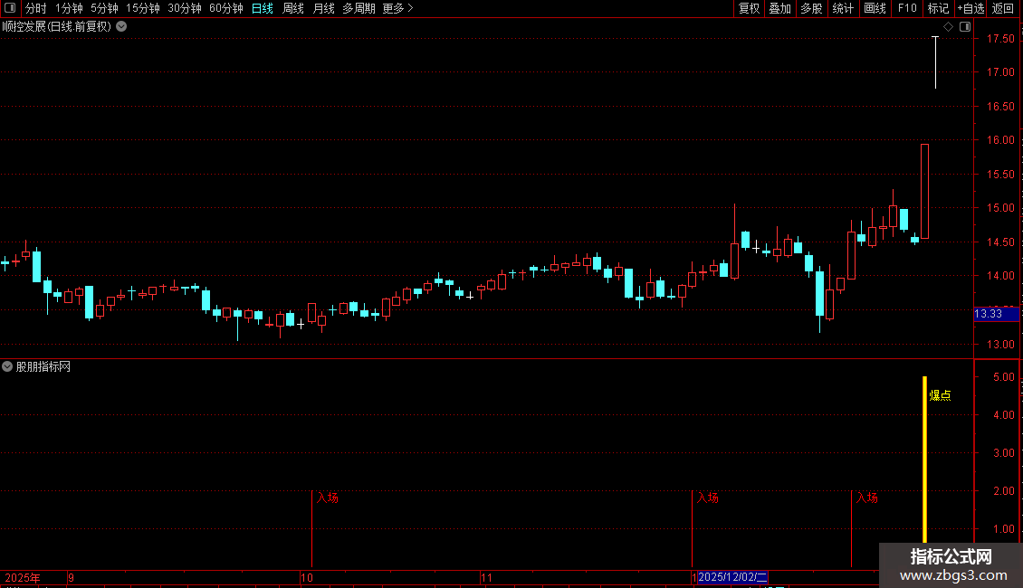通达信爆点入场指标是一款专为捕捉强势股突破信号设计的技术分析工具,它通过价格与通道的共振关系生成直观的买卖信号。该指标主要包含两个有效信号:入场信号与爆点信号。当价格突破支撑线(红色细线)且收盘价站上压力线(黄色线)时触发入场信号;当价格以涨停板形式强势突破压力线时,则触发更为强烈的爆点信号,并在图中以彩色柱状图突出显示。