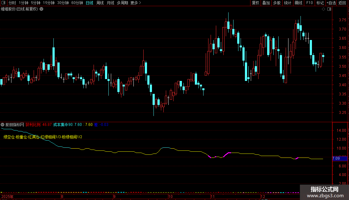 如果成本集中90<=10ANDWINNER(收盘价)*100>90,返回成本集中90,否则返回无效数,画洋红色,线宽为3