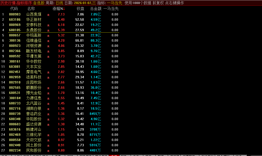 通达信【一马当先】竞价排序指标金钻指标物有所值信号少排序源码
