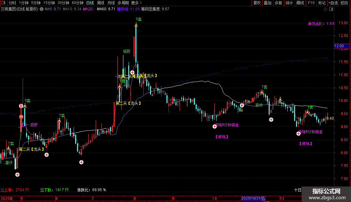 - 进场信号:基于ZIG转向函数,在阶段性低点标记“进场”提示