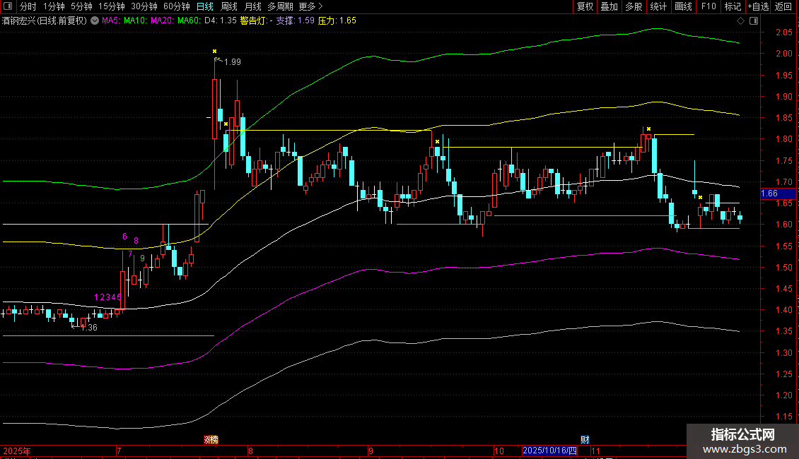 警告灯:IF(TJ,HIGH*1.008,DRAWNULL),CROSSDOT,LINETHICK2,COLORYELLOW;