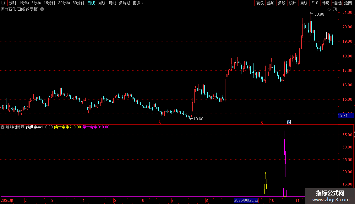 绝世金牛2:IF((A AND 避开刀尖 AND COUNT(A ,20)=1),30,0);