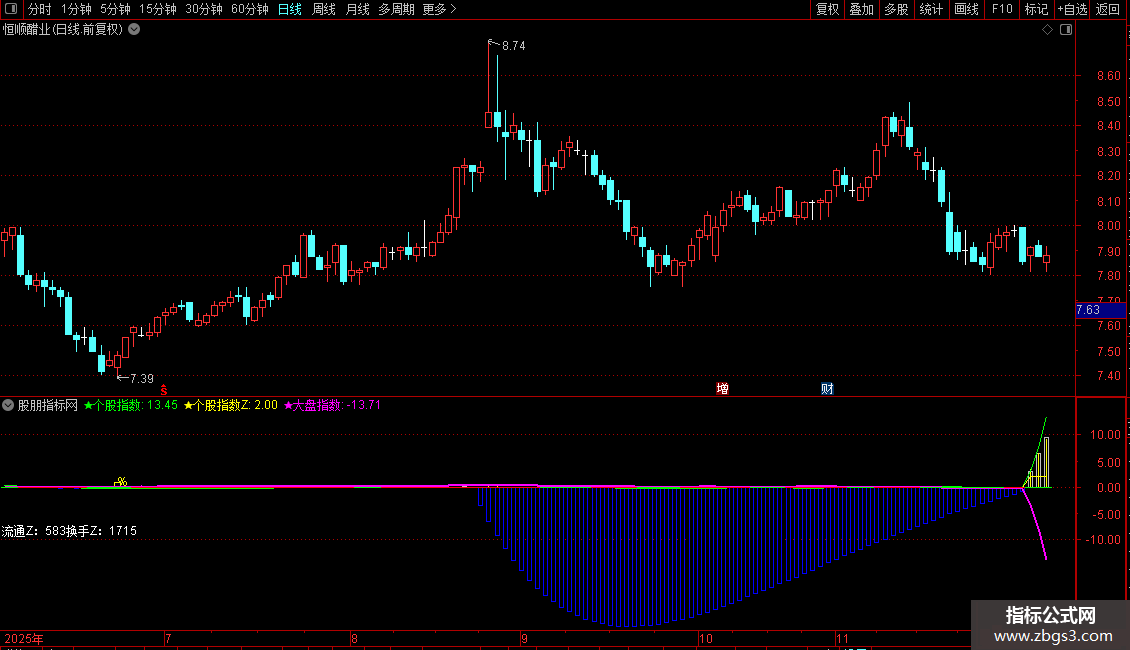 ★个股指数Z:IF(REF(★个股指数,0)-REF(★个股指数,1)>0.25,2,0);