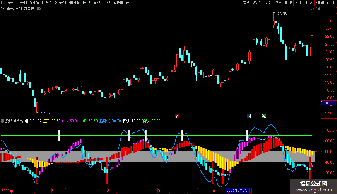 STICKLINE(中K<=中D,中K,中D,0.1,0),COLOR00FFFF;