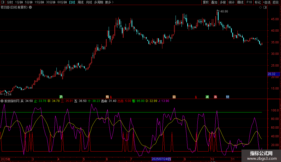K:=SMA(RSV,3,1),COLORYELLOW,LINETHICK1;
