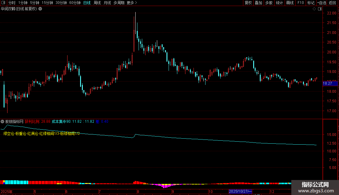 STICKLINE(差>0 AND C< 吸筹线2 AND C< 吸筹线1,0,差*0.5,2,0),COLORBLUE;