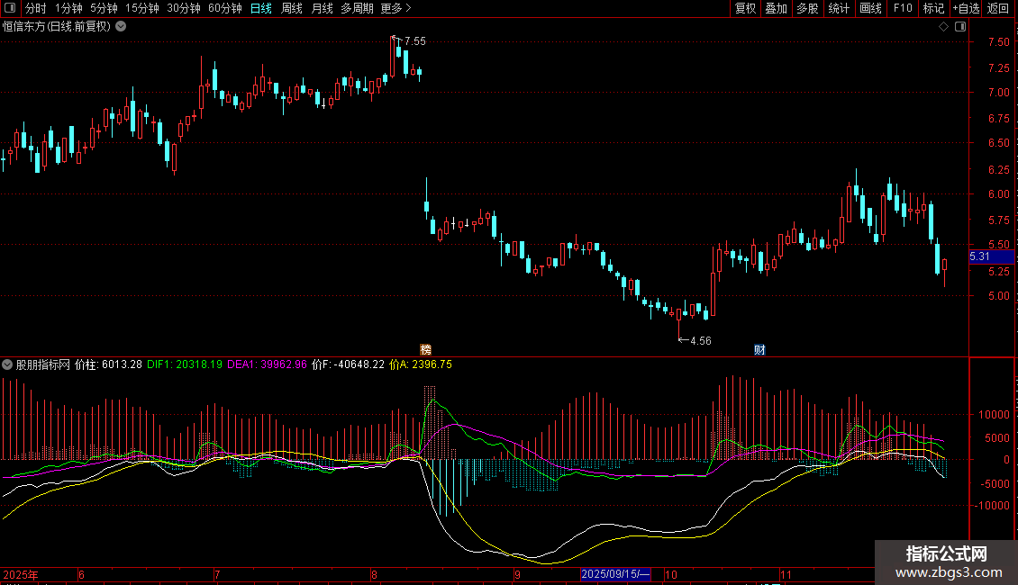 基点:=CONST(LLV(MACL,250)); 基:=CONST(HHV(MACL,250))-基点;