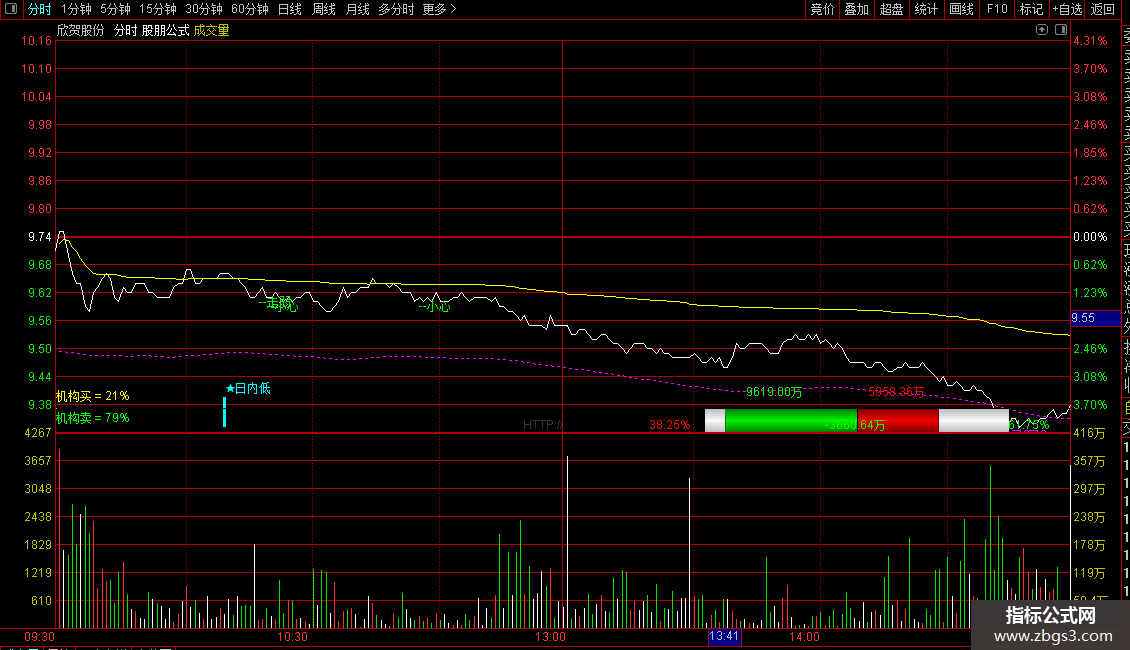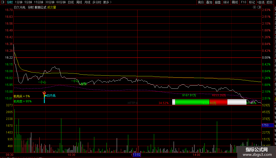 1.本指标用于分时图主图