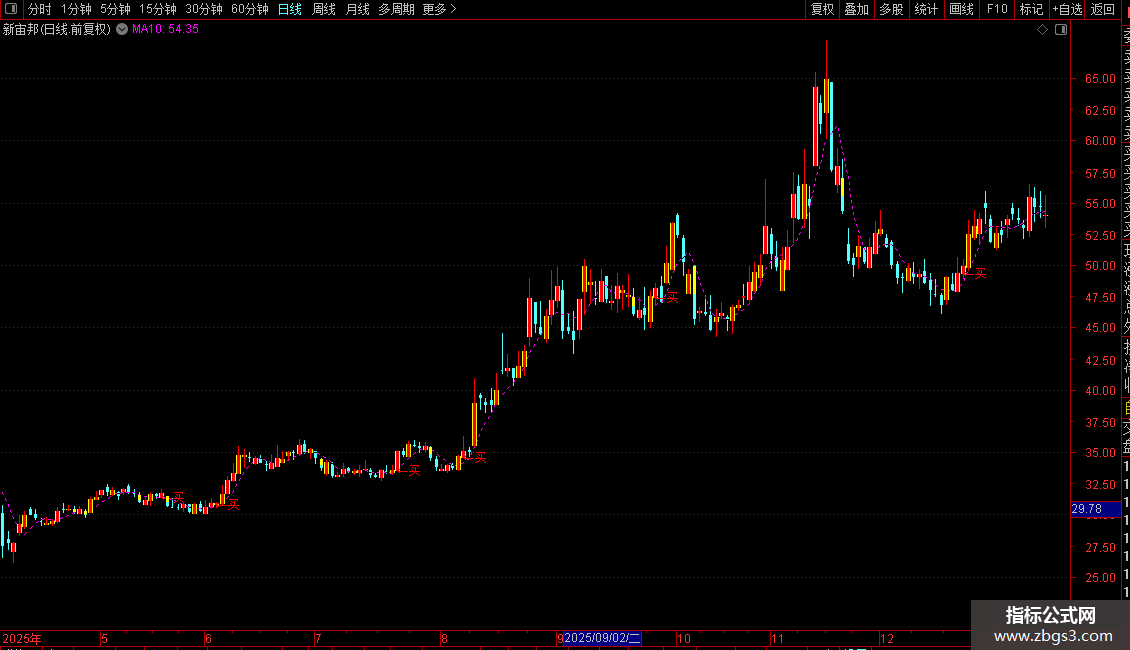 生命线:=MA(CLOSE,60),COLORYELLOW,LINETHICK2;