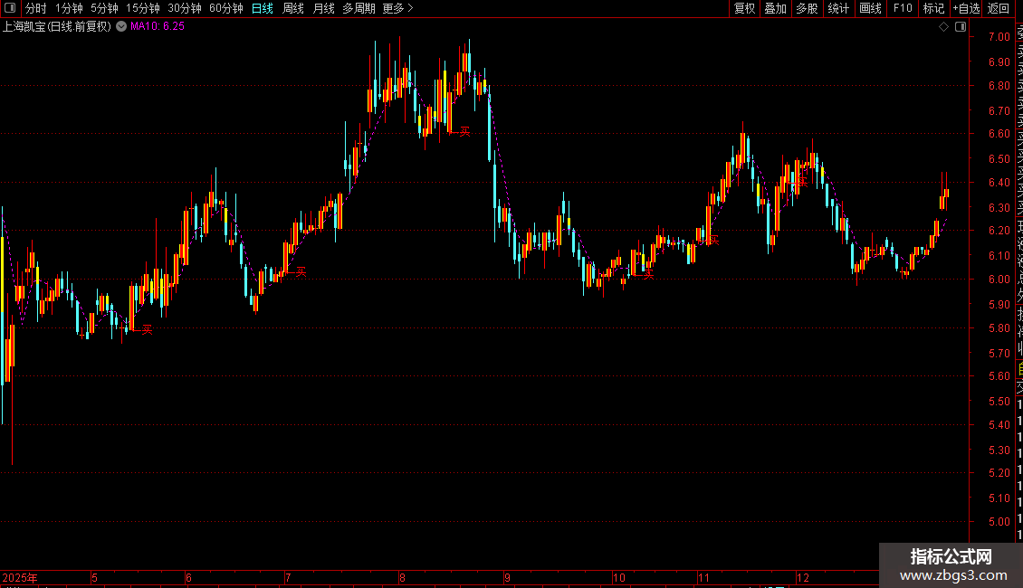 DRAWTEXT(CROSS(快,慢) AND C>=快 AND C>O AND C< REF(C,1)*1.07 ,O,'←买')COLORRED;