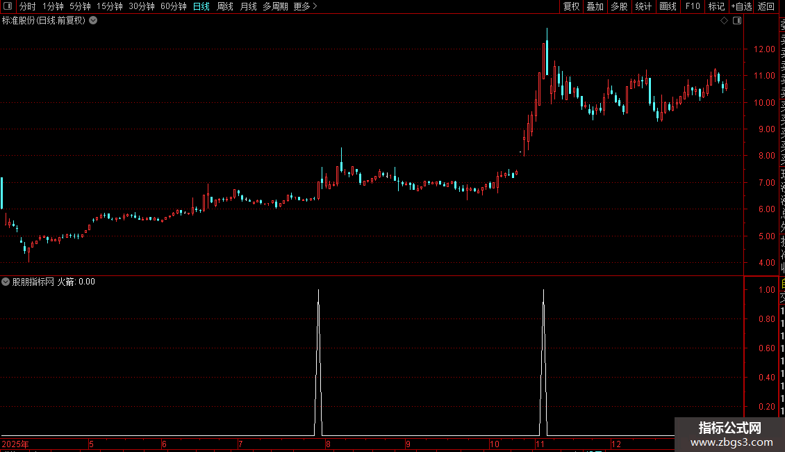 通达信麒麟定妖主图之火箭图标选股指标公式源码