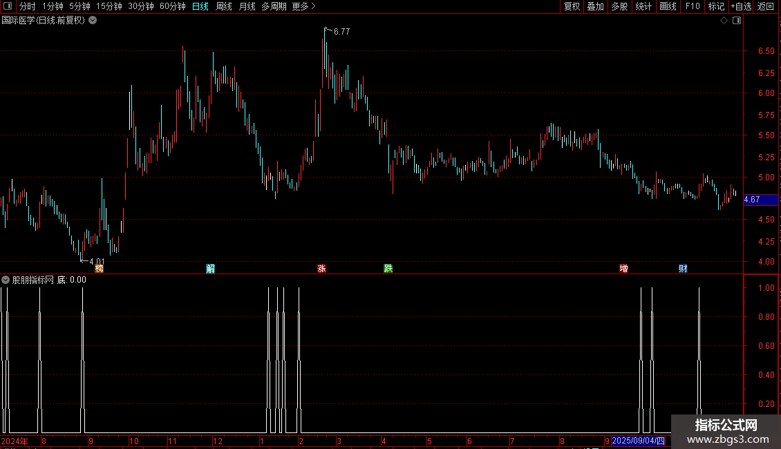 RSV1:=(CLOSE-LLV(LOW,21))/(HHV(HIGH,21)-LLV(LOW,21))*100; RSV2:=(CLOSE-LLV(LOW,37))/(HHV(HIGH,37)-LLV(LOW,37))*100; 短线:=SMA(SMA(RSV1,3,1),3,1)+3*STD(CLOSE,21),COLOR00FF00;中线:=SMA(RSV2,5,1)+2*STD(CLOSE,37),colorred; RSV3:=(CLOSE-LLV(LOW,55))/(HHV(HIGH,55)-LLV(LOW,55))*100; 长线:=SMA(RSV3,5,1),coloryellow; 中线2:=-100*(HHV(HIGH,40)-CLOSE)/(HHV(HIGH,40)-LLV(LOW,40));底: (CROSS(中线2,-90) AND (长线<中线 AND 长线>REF(长线,1)OR 短线<20 AND 中线<20 AND 长线<20))OR (CROSS(短线,长线)AND 长线<18 AND 长线>REF(长线,1)OR CROSS(长线,5));