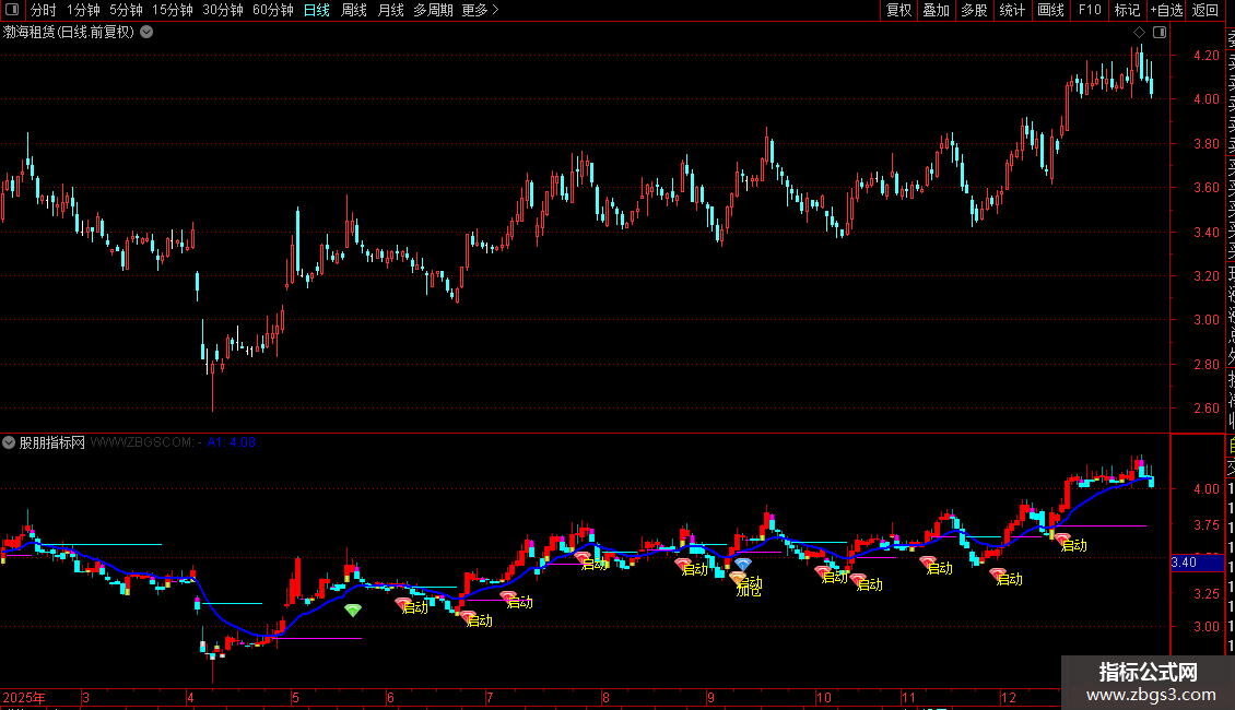 2. 信号识别:出现“启动”图标+文字,代表短期均线金叉且股价走强,可关注建仓;“进入”信号提示中期趋势转好,适合轻仓介入;“加仓”“突破”信号(突破480日高点)出现时,代表趋势确认突破,可加仓跟进;