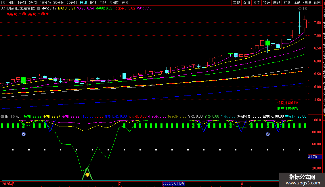 黑马启动+短底强升追“双剑合一预警指标 通达信 贴图 含主图和副图