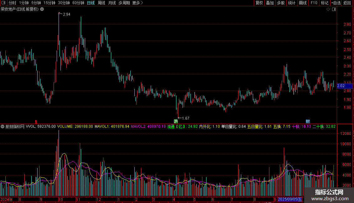 单日量比:V/REF(V,1),COLORWHITE,NODRAW;