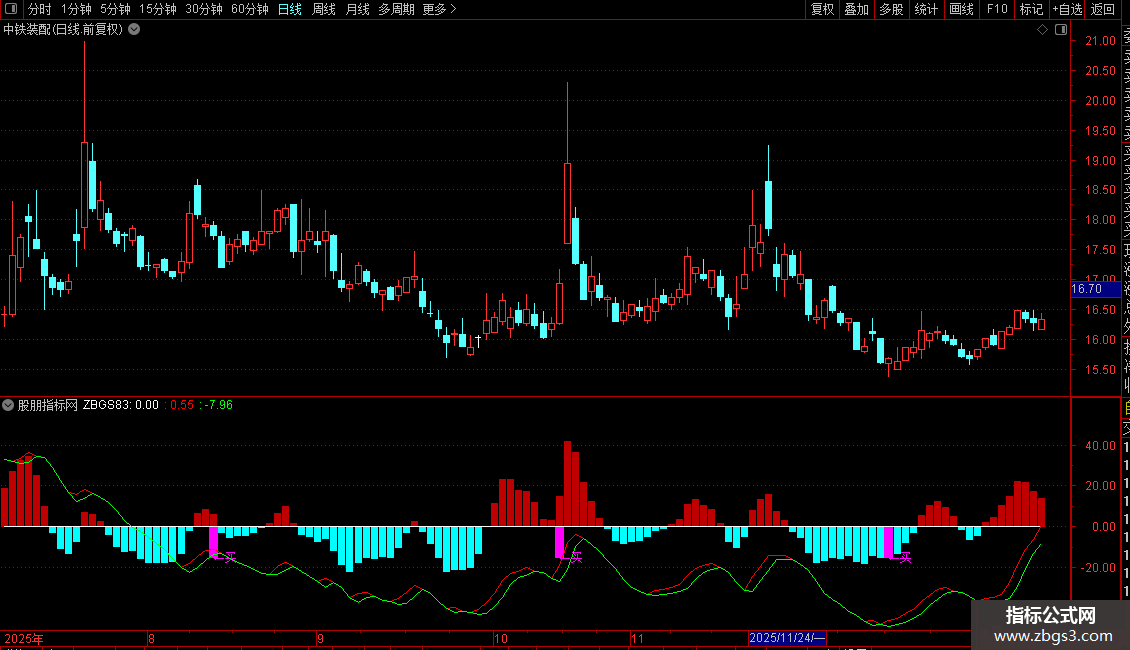 2. 辅助参考:红色柱状线代表多头动能占优,青色柱状线代表空头主导,白色/粉色/蓝色特殊柱体强化超跌信号;
