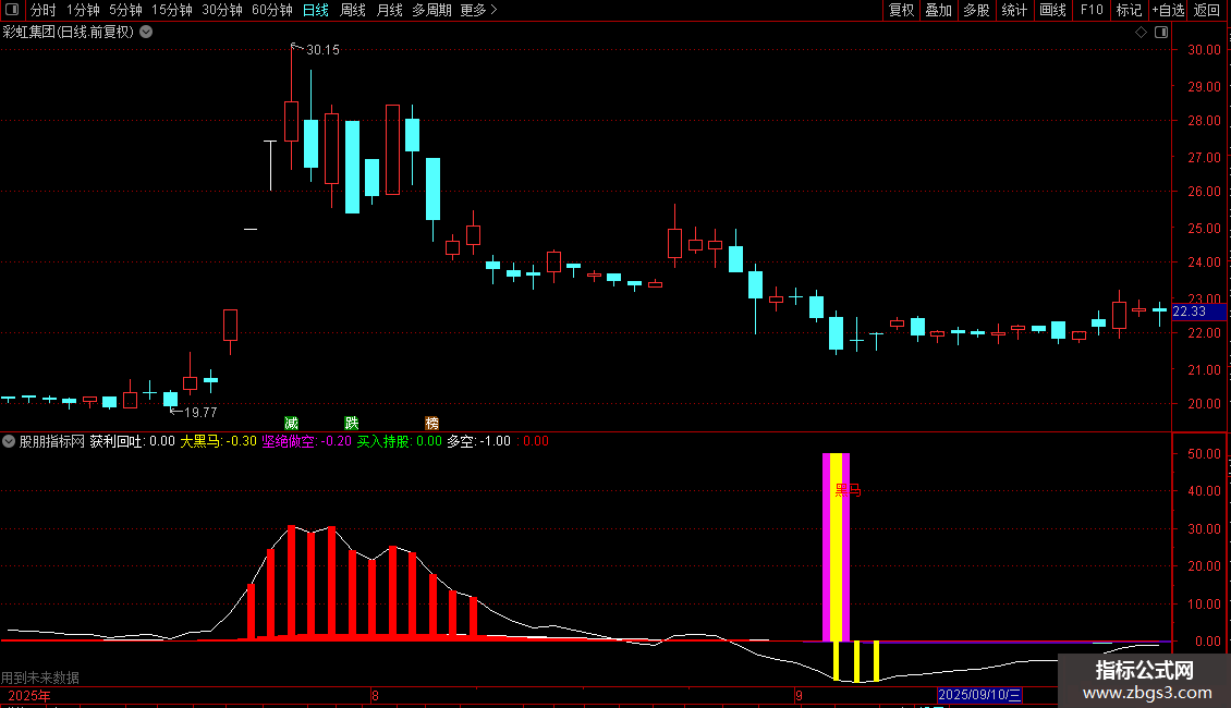 大黑马:(A2<0)*A2,COLORD4FF7F,LINETHICK0;