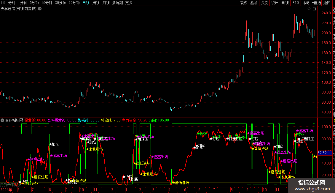 抄底线信号出现买入,爆发线出现注意是顶部,注意减仓。