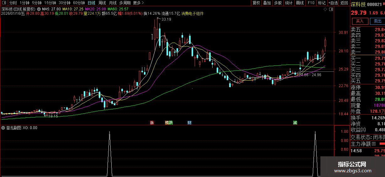 A1:=(潜龙副图-MA(潜龙副图,34))/MA(潜龙副图,34)*100;