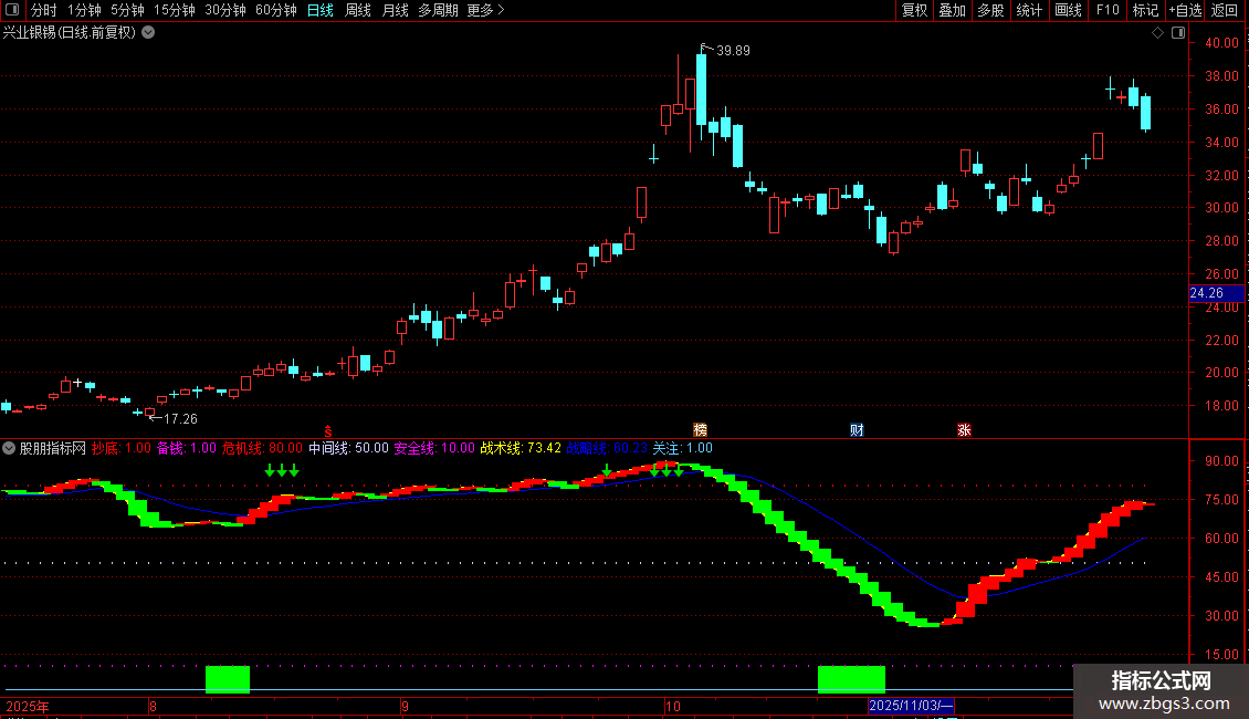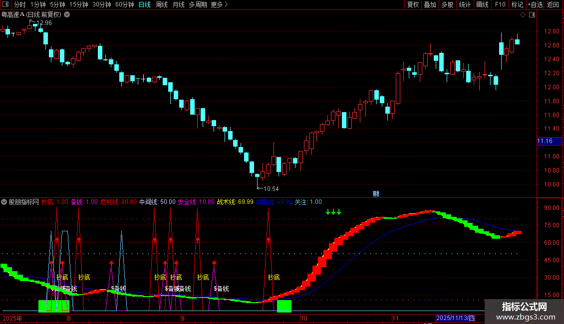 短线逃顶:=IF(I,0,1),COLORGREEN;