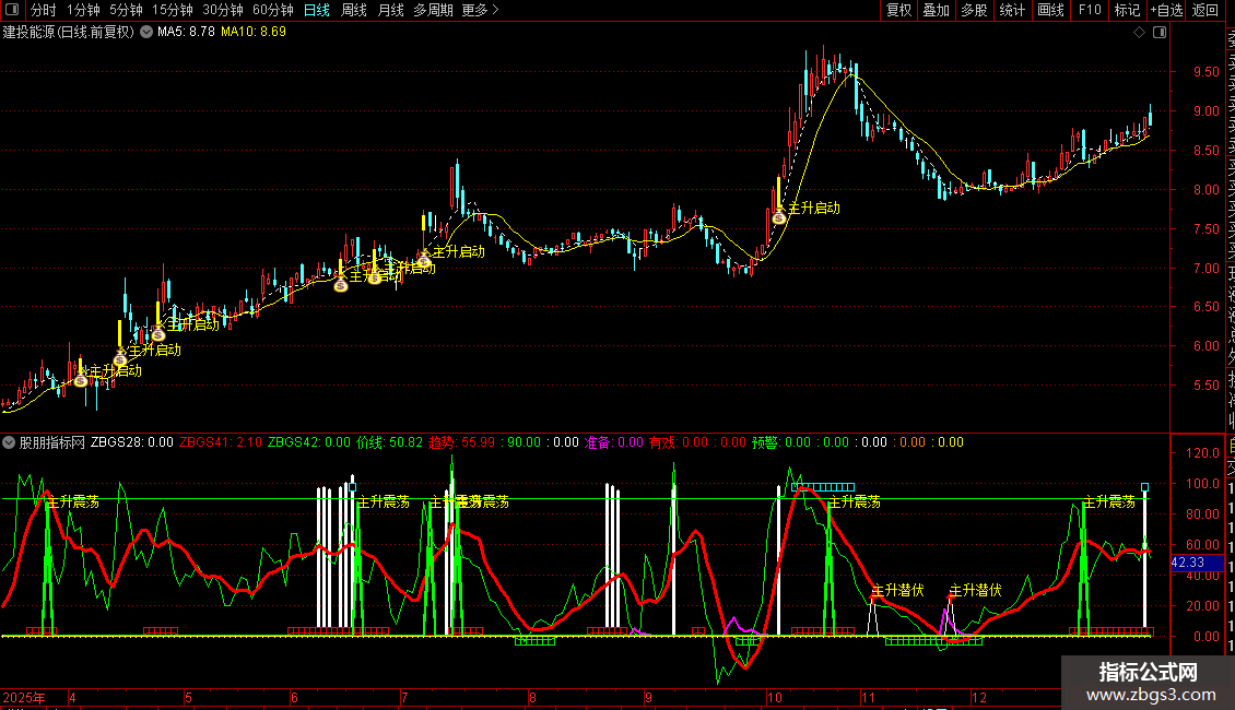 这套妖股必备套装指标是专门用于捕捉潜在妖股的实战工具。通达信潜伏妖股指标通过主图与副图的信号组合,精准提示买点。当副图显示主升潜伏信号时,即为理想的潜伏买入时机。更进一步,当主图出现主升启动信号,并与副图中的白色量能柱形成共振时,则构成了明确的启动买点。这款好用的潜伏妖股指标能有效辅助投资者进行决策,是寻找妖股的必备套装指标。