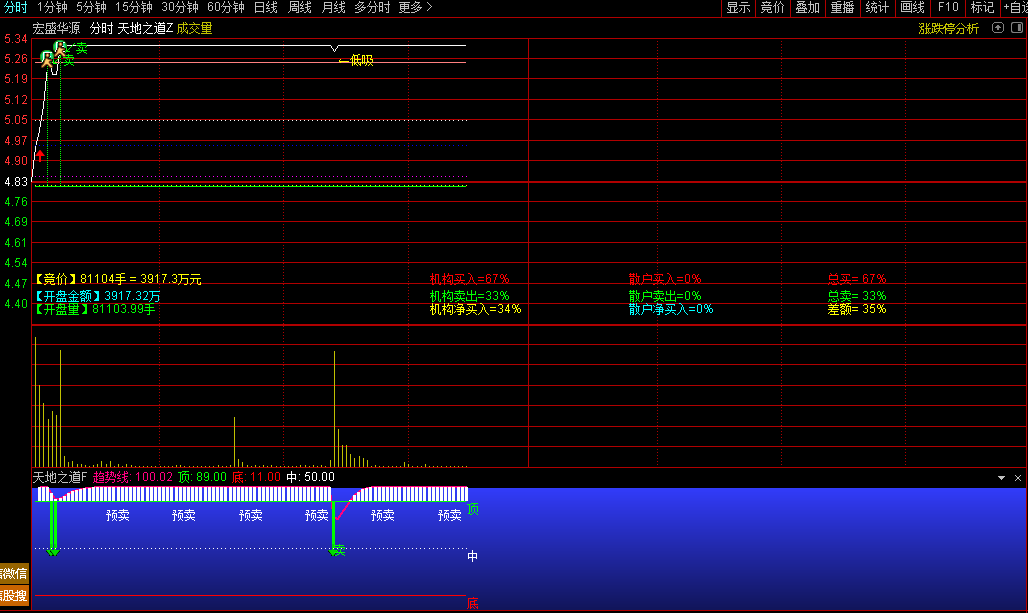 通达信『天地之道』分时主副图精准判断分时走势T+0高抛低吸点位源码