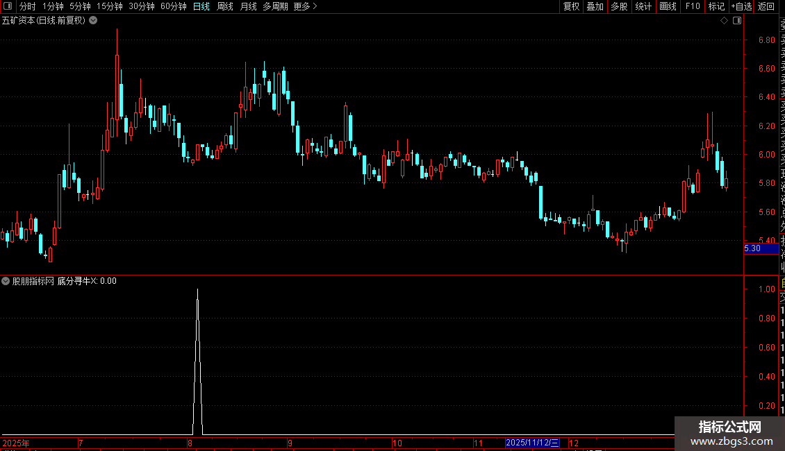 VAR7:=COUNT(VAR2,6)>=3 AND COUNT(VAR3 OR VAR4,5)=0 AND LLVBARS(L,6)=1 AND HHVBARS(VAR1,6)>=5 AND VAR5;